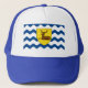Chapéu com design com uma bandeira do condado histórico de Hertfordshire, em Inglaterra, na Grã-Bretanha Excelente; bandeira com uma ilustração de um embate amarelo sobre fundo ondulado branco e azul