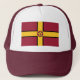Chapéu com design com uma bandeira do condado histórico de Northamptonshire, Inglaterra, Reino Excelente; bandeira marrom com uma cruz de ouro e rosa tradicional do condado no centro