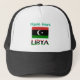 O boné de caminhoneiro personalizado mostra a bandeira líbia preta, vermelha, verde e branca com a palavra Líbia abaixo. Acima há um espaço para um nome, seu nome, para adicionar um visual personalizado ou o nome de outra pessoa como um presente especial. Use no seu reencontro familiar, se desejar.