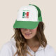 Boné de caminhoneiro com a bandeira do México e seu nome personalizado em texto verde negrito na frente. Um design de herança limpa perfeito para reuniões familiares mexicanas, Cinco de Mayo, Dia da Independência do México em 16 de setembro, orgulho cultural, viagens, festivais, eventos esportivos e uso diário