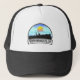 Trendy Barranquilla Magnet Colombia Skyline Panorama View em um Trucker Hat mostrando os prédios e linhas do horizonte da cidade colombiana. Compre este souvenir da colômbia agora.