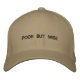 Aqui está um boné de beisebol com as palavras POOR MAS WISE na frente dele.