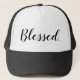 Faça uma declaração enquanto veste este chapéu de caminhoneiro. Este design apresenta a palavra "abençoado" em um roteiro negro moderno. Você pode personalizar ou sair como está. O presente perfeito para sua família e amigos cristãos.