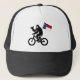 North Carolina has amazing cycling - from the mountains near Asheville to the coast you can ride every kind of terrain here! This design is bigfoot riding a bike holding a North Carolina flag and giving a shaka sign.