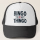 Engraçado "Bingo é o meu thingo", o design do bingo representa uma bola de bingo num design de texto simples azul e vermelho. Este humorístico design de bingo faz um belo presente para todos os ávidos jogadores de bingo e amantes de bingo.