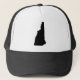 A forma do estado de New Hampshire a preto e branco. Adicione uma mensagem de texto de souvenir personalizada. Crie seu próprio boné por ele.