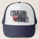 As palavras "bom louco" escrito sobre um grupo de discos do shuffleboard