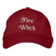 Um bonito creme bordado, boné vermelho de beisebol com a citação da Bruxa de Fogo. Essas bruxas modernas que podem ser personalizadas para um nome ou outro texto. Uma ideia de presente feia.