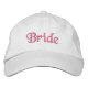 Boné / Chapéu bordado personalizável da noiva da Heard_. Mostrado é branco com letras cor-de-rosa.