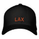 Chapéu de lacrosse com o logotipo bordado "LAX". Coágulos pesados.