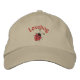 Boné bonito com joelho bordado em preto e vermelho, e a palavra LOVEBUG, também bordado em vermelho. Totalmente costura, não apenas estampada ou impressa. Muito fofo!