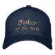 Pai do chapéu da noiva. Um chapéu estilo boné para o Pai orgulhoso. Vista aqui em azul escuro com bordado brando que diz, "Pai da Noiva". Você escolhe as cores.