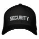 Chapéu preto com letras brancas para identificar membros da equipe de segurança para música, filme, segurança ou outros eventos.
