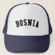 Verifique para fora este chapéu de Bósnia! É você de Bósnia? Você tem um amigo ou um membro da família que amem Bósnia? Em caso afirmativo, este chapéu da "bandeira" é exatamente o presente que você está procurando! As características de design "Bósnia" na rotulação preta arqueada na pia batismal clássica da faculdade.