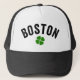 Texto preto ou branco de Boston (Massachusetts) com shamrock verde de trevo de quatro folhas. Mostre seu Orgulho Irlandês de Boston!