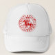 Bonito boné branco decorado do selo do Templo vermelho.