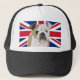 Este chapéu de caminhoneiro mostra meu desenho de um Bulldog Inglês contra um bandeira da União. Originalmente, os Bulldogs foram criados em Inglaterra para a atividade de toucador, mas isso acabou por ser ilegal. Os Bulldogs dos dias modernos são gentis, amigáveis, leais e gentis, e fazem belos animais de estimação. Winston Churchill era parecido com um Bulldog britânico.