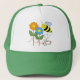 Uma abelha amarela e preta com corações vermelhos e flores vermelhas e azuis. Linda ilustração gráfica do jardim de verão. As cores brilhantes com o slogan/ dizendo "Bee Love" (Seja Love) tocam em palavras.