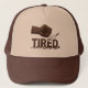 Esta tampa ousada e criativa apresenta um punho poderoso feito de grãos de café torrados, literalmente esmagando a palavra "CANSAdo".