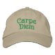Carpe diem! Palavras para viver! Carpe diem significa agarrar o dia! E todos nós deveríamos fazer isso! Este boné legal tem a frase CARPE DIEM bordada nele. Veja todos os tipos e cores de bonés disponíveis no Stitchbaby e selecione aquele que é perfeito para você!