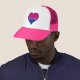 Chapéu de caminhoneiro preto com design de coração em cores de bissexualidade; bandeira de orgulho rosa, roxo e azul, design de amor do arco-íris