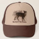 Este chapéu caracteriza marrom delicado um cervo branco-atado que move-se através das madeiras nevado do inverno. Parou e girou sua cabeça porque ouviu um ruído. Suas orelhas grandes estão alertas. A cara tem as marcações brancas em torno dos olhos e do nariz. O texto lê: Respeite a terra. Pode ser personalizada para serir suas necessidades.