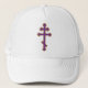 Uma cruz roxa bonita em um chapéu. Compartilhe da beleza de sua fé com seu chapéu.