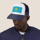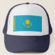 Este chapéu do camionista ostenta a bandeira de Kazakhstan. Mantenha uma cabeça legal com um dom pequeno de Kazakhstani.