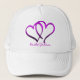 Um chapéu do divertimento que você possa personalizar para o fazer para qualquer um em sua festa de casamento. Caracteriza corações roxos entrelaçados com texto feito sob encomenda na parte inferior. Aperfeiçoe para a noiva, o noivo, os padrinhos de casamento, as damas de honra, os pais, ou o qualquer um mais!