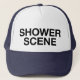 CHÁ SCENE diversão e slogan irônico no chapéu de caminhoneiro, declaração tipográfica negra e engraçada, inspirada pelo personagem de comédia de tv frank rossitano