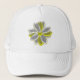 Este bonito chapéu floral branco apresenta uma imagem digital de uma flor margarida com pétalas brancas e amarelas com um centro amarelo. As pétalas parecem brilhar com uma bela qualidade refletiva. Ele faria um chapéu perfeito para vestir enquanto tocava tênis e as cores da flor até combinavam com as cores de uma bola de tênis. Este chapéu está definitivamente fora de moda.