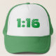 Chapéu do estilo do camionista com números 1:! 6 nele, representando o 1:16 dos romanos. 16 para eu não sou humilhado do evangelho do cristo: para ele é o poder do deus até o salvação a cada que believeth; ao judeu primeiramente, e igualmente ao grego.