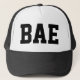 Boné do camionista com a parte traseira da malha. Texto impresso; "BAE" na parte dianteira. Aperfeiçoe para casais.