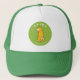 Chapéu do camionista com uma ilustração e um design de um Shiba, sentando-se em cima de um fundo do verde amarelado.