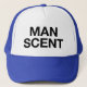 EQUIPE o slogan do divertimento do PERFUME no chapéu do camionista, tipo preto no chapéu dos azuis marinhos - apenas como no episódio da série, tipografia corajosa, indicação do divertimento, inspirada pelo rossitano da franquia do caráter da tevê.