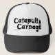 Boné preto e branco da bola, caracterizando o logotipo para o massacre da catapulta da banda desenhada por Justin Swanson e o caráter James.