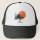 Design inspirado japonês. Silhuetas da árvore e dos pássaros com por do sol no fundo.
