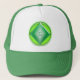 O início será colocado sobre uma pilha de 4 diamantes concêntricos (aumentando a escuridão de perto do branco mais pequeno no centro, para o verde médio para fora), sobre um quadrado tridimensional (verde escuro), tudo sobre uma órbita 3D (verde claro).