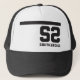 Chapéu preto e branco do camionista com logotipo sul de Chelan da costa na parte dianteira.