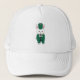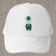 Você gosta de chapéus divertidos? Este chapéu tem um coelho branco vestindo um uniforme de banda verde e dourado marchando enquanto toca clarinete.
