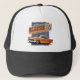 Esta é uma renderização de um carro clássico americano com gráficos antigos no fundo para um retrô estilizado.