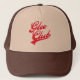 Chapéu do clube de alegria. A pia batismal é um estilo similar àquele nos jérseis de basebol, ondulando letras do roteiro com uma rusga grande na extremidade. Letras vermelhas com uma sombra cor-de-rosa pequena abaixo e ao direito. Um boné do clube de alegria do divertimento para os cantores para fora lá!