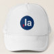 Vírgula La kamala pronúncia engraçada branco vermelho e ponto azul patriótico Chapéu de Caminhoneiro. Tipografia moderna vermelha e branca em ponto azul.