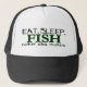 Coma, durma e pesque a roupa, os chapéus, as camisolas e os presentes para todo o pescador. Refrigere as artes de pesca, a roupa, as camisetas e os autocolantes no vidro traseiro para sua viagem de pesca seguinte. Chaveiro e roupa da pesca para o pescador incondicional.