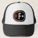Um chapéu de caminhoneiro FUEL com fundo preto, rastras de corrida, uma coroa laranja, e uma estrela branca. É o presente ideal para todos na sua lista, incluindo você mesmo, seus entes queridos, amigos, colegas funcionários, e muito mais.