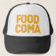 COMIDA COMA Slogan divertido no chapéu de caminhoneiro, amarelo com contornos vermelhos, tipografia ousada, declaração divertida, inspirado pelo personagem de tv frank rossitano.