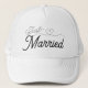 Recem casados, chapéus divertidos de lua de mel e noiva. Anuncie seu novo status a todos. Fonte de script elegante com uma ilustração cardíaca bonita. Letra negra simples e doce.