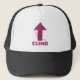 Um design de tipografia que tem a palavra subida e uma pintura de seta para cima. Corda correndo tece entre as letras da palavra escalada. Para quem ama esporte ou escalar trade.