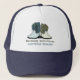 O boné de chapéu / bola do camionista do Country Western com dois pares de botas de cowboy e painel frontal branco para personalizar. Anuncie uma empresa relacionada à fazenda, executada por um casal, adicionando duas linhas de texto separadas ou exclua uma ou ambas. Dois pares de botas de cowboy, em azul e marrom, sentam-se atrás nesta design ilustrada. A cor azul do boné do marinho pode ser alterada.