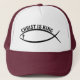 "Jesus Fish" (também conhecido como Ichthys), que tem uma cruz por um olho. O texto acima diz "Cristo é rei".